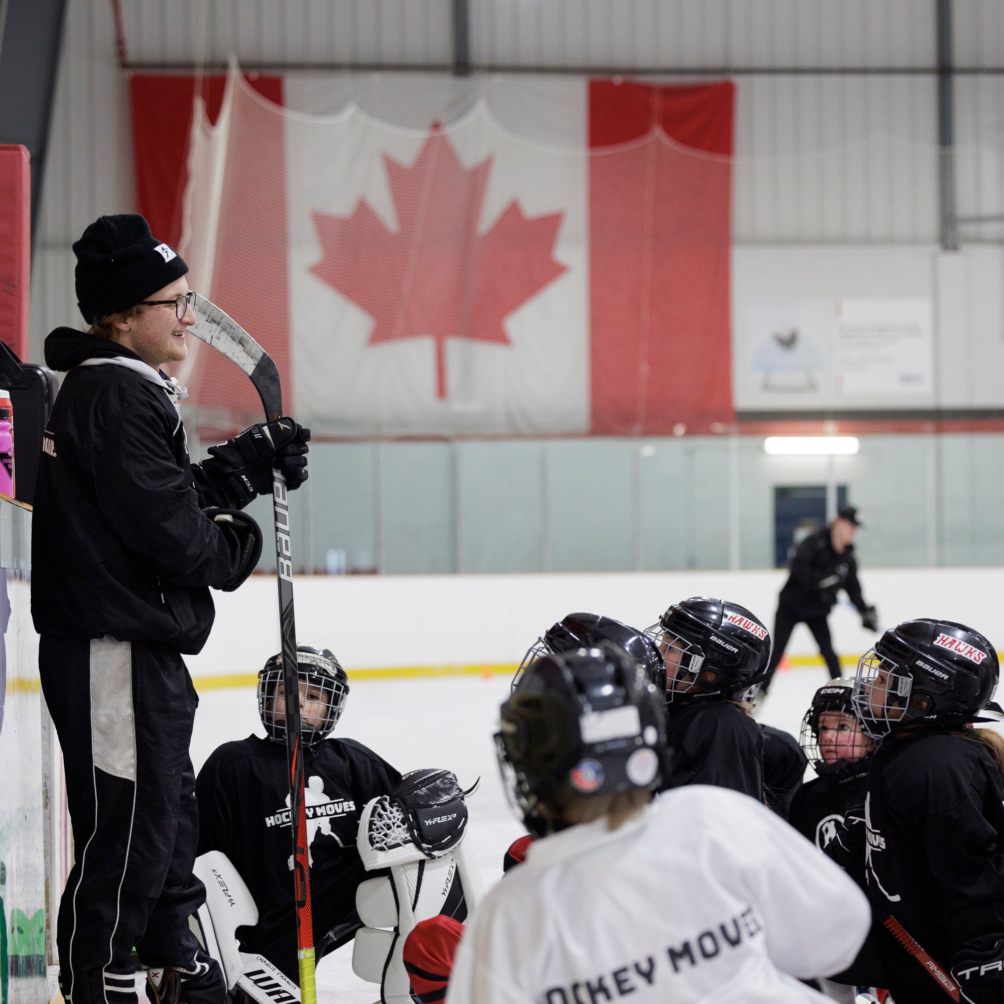Yup! Tying skates and snapping helmet clips, our coaches expect to help younger players get prepped for ice time.